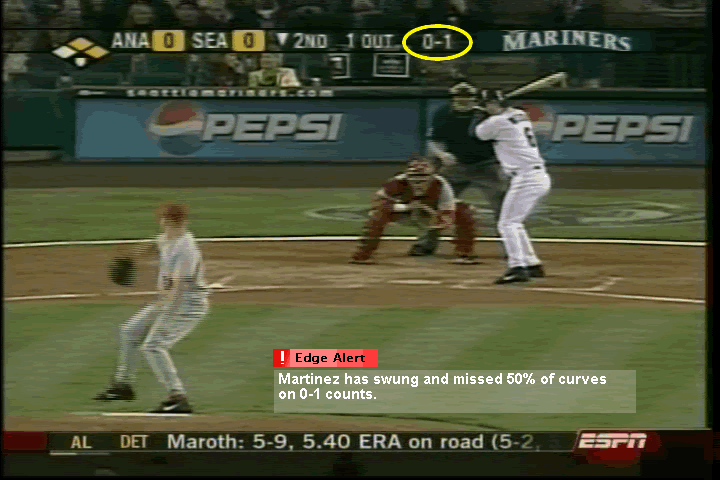 Tells the viewer when something is likely to happen based on the tendencies of the hitter and/or pitcher.