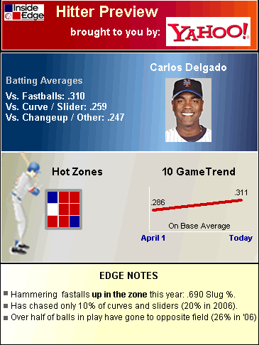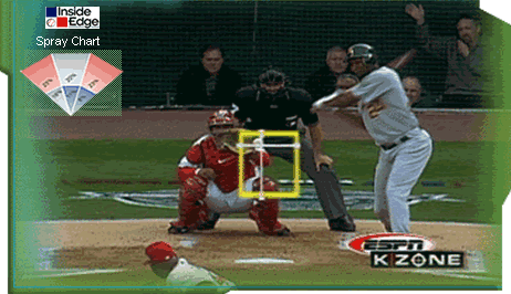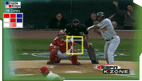 The graphic we made famous. The Hit Zones tell the viewer what part of the strike zone the batter handles best.