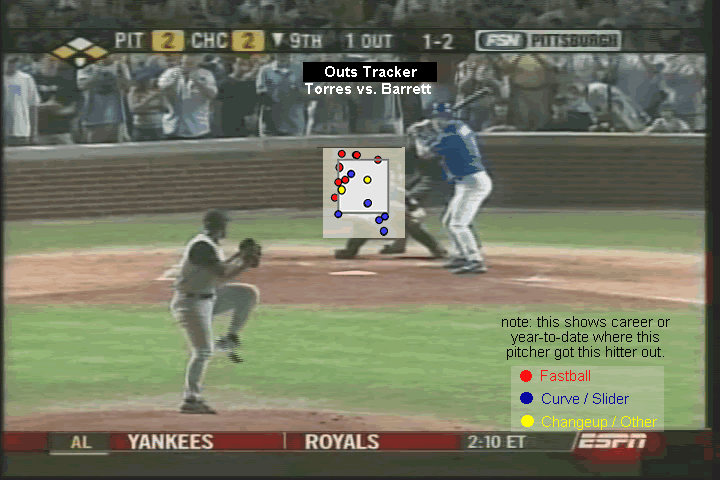 The Outs Breakdown shows the viewer what pitches and locations he has used to get this batter out in the past.